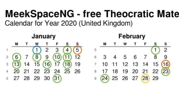 2020 MeekSpaceNG Theocratic Calendar