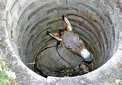 One day a farmer’s donkey fell down into a well. The animal cried pitifully for hours as the farmer tried to figure out what to do. Finally, he decided the animal was old, and the well needed to be covered up anyway; it just wasn’t worth it to retrieve the donkey……….